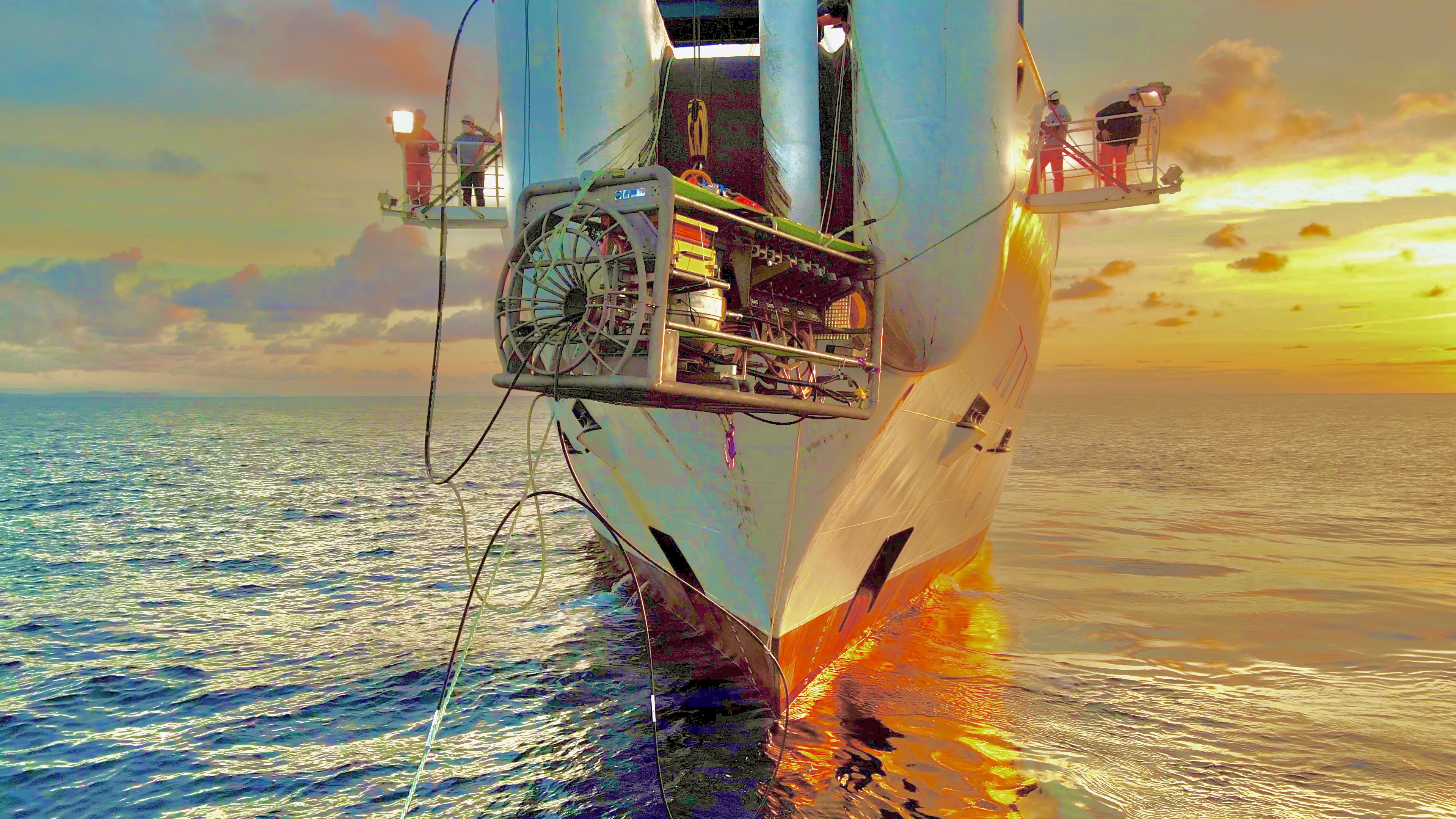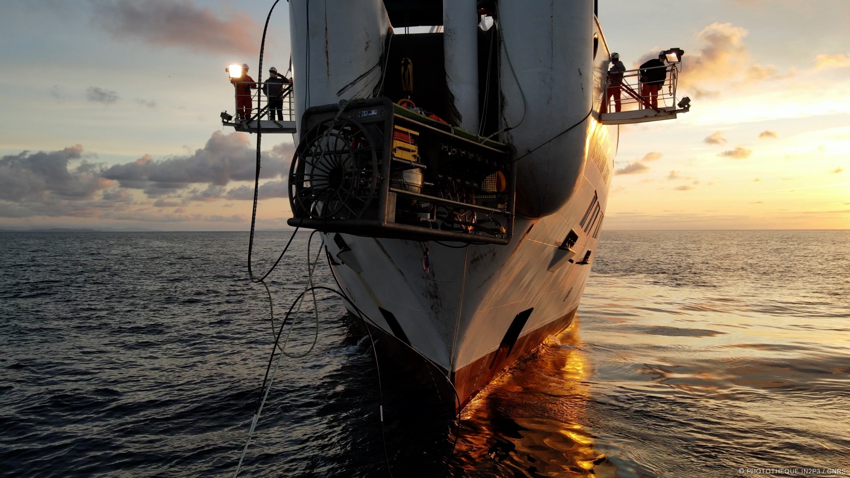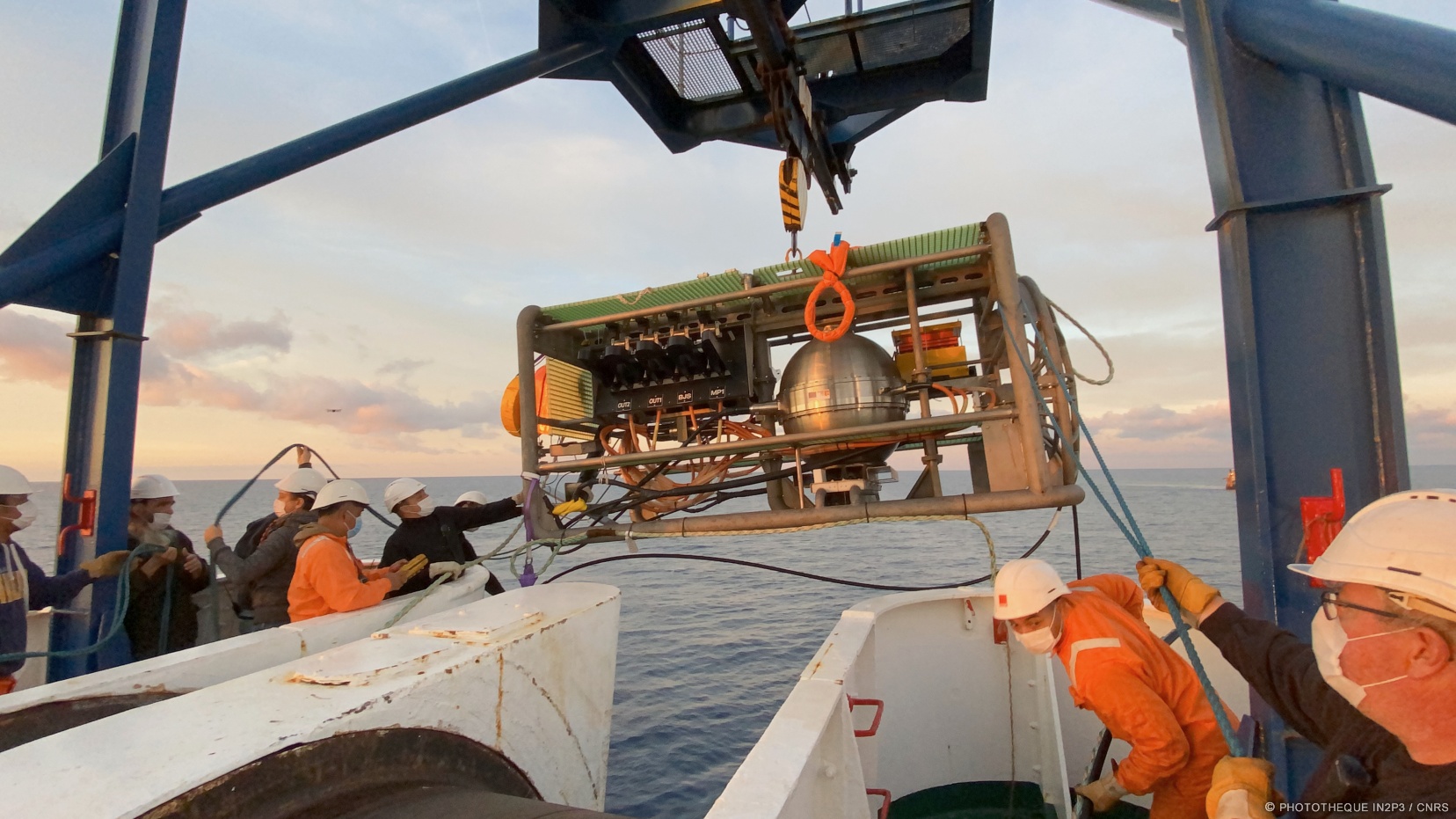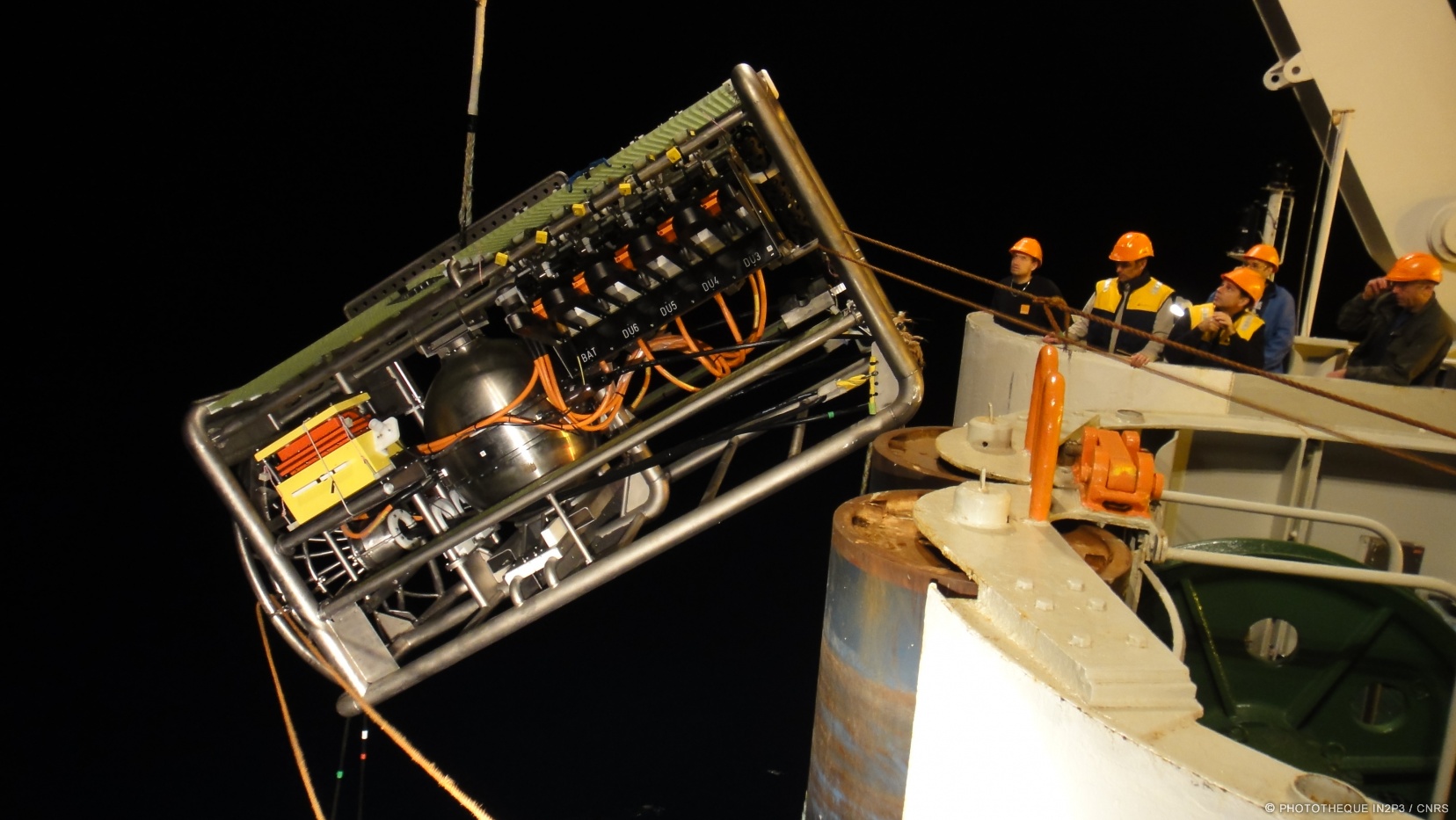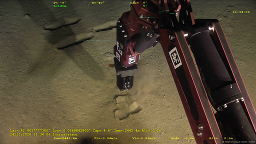 February 2022: Deployment of Ifremer's scientific junction box with its instruments (gamma spectrometer (CPPM), seismometer (Géoazur), BioCamera (IP2I), BathyBot (MIO, DT INSU))