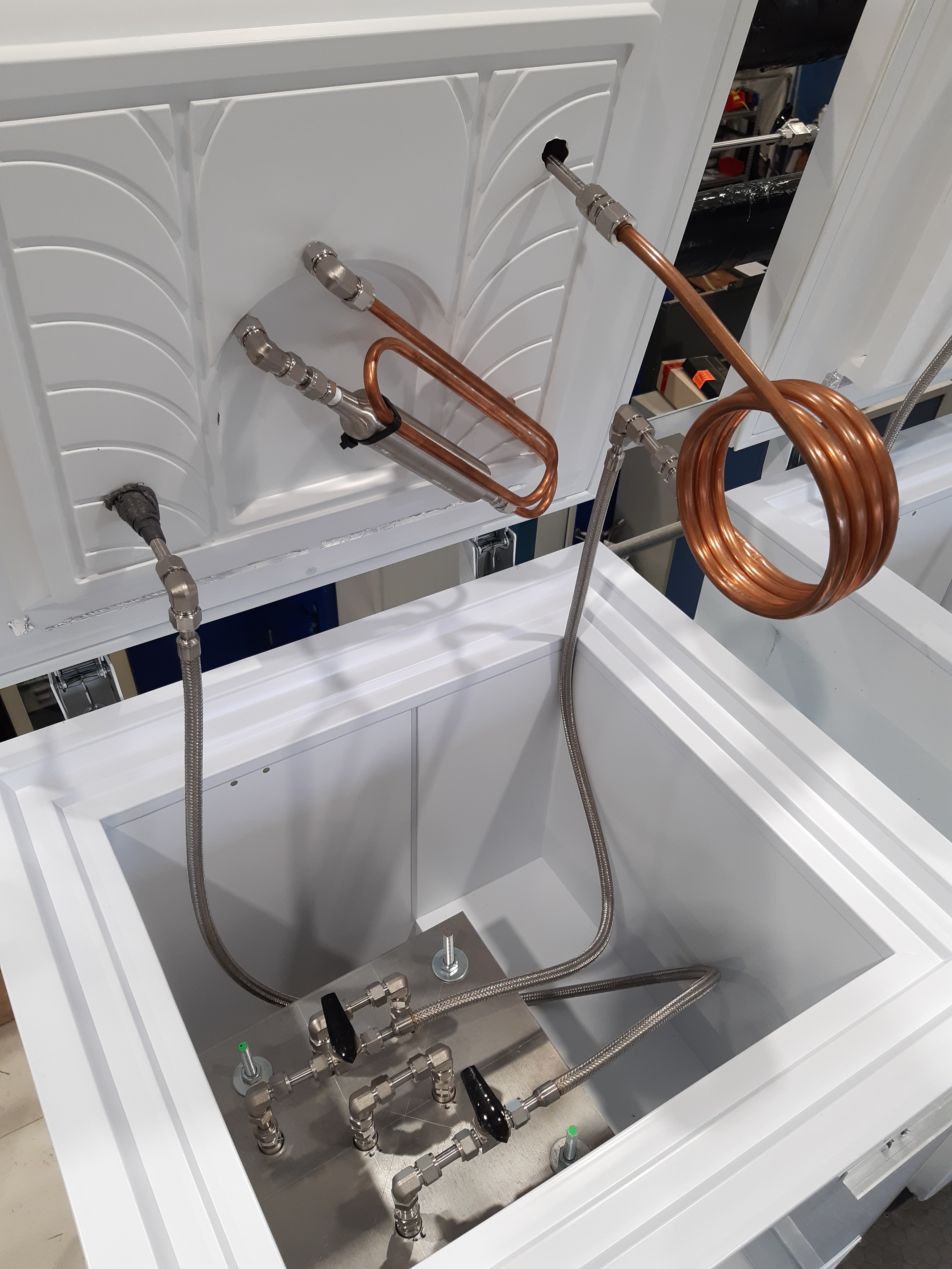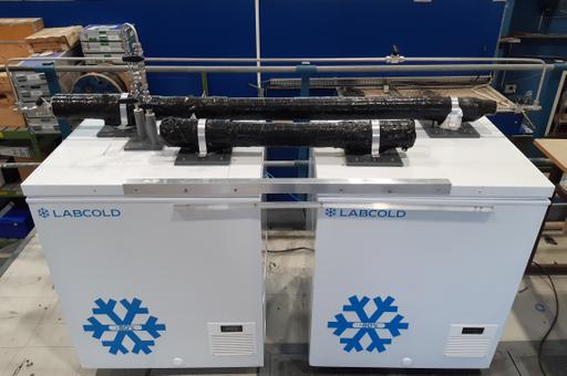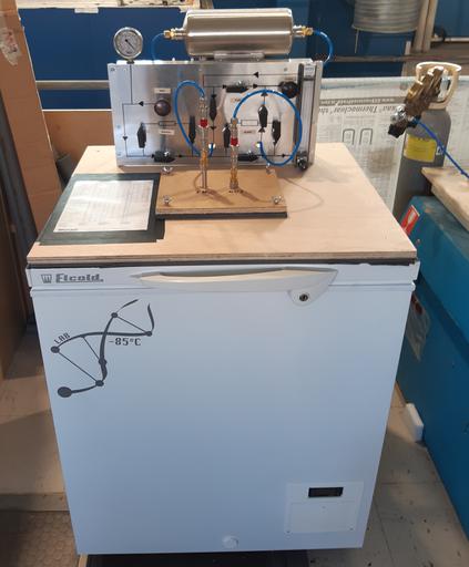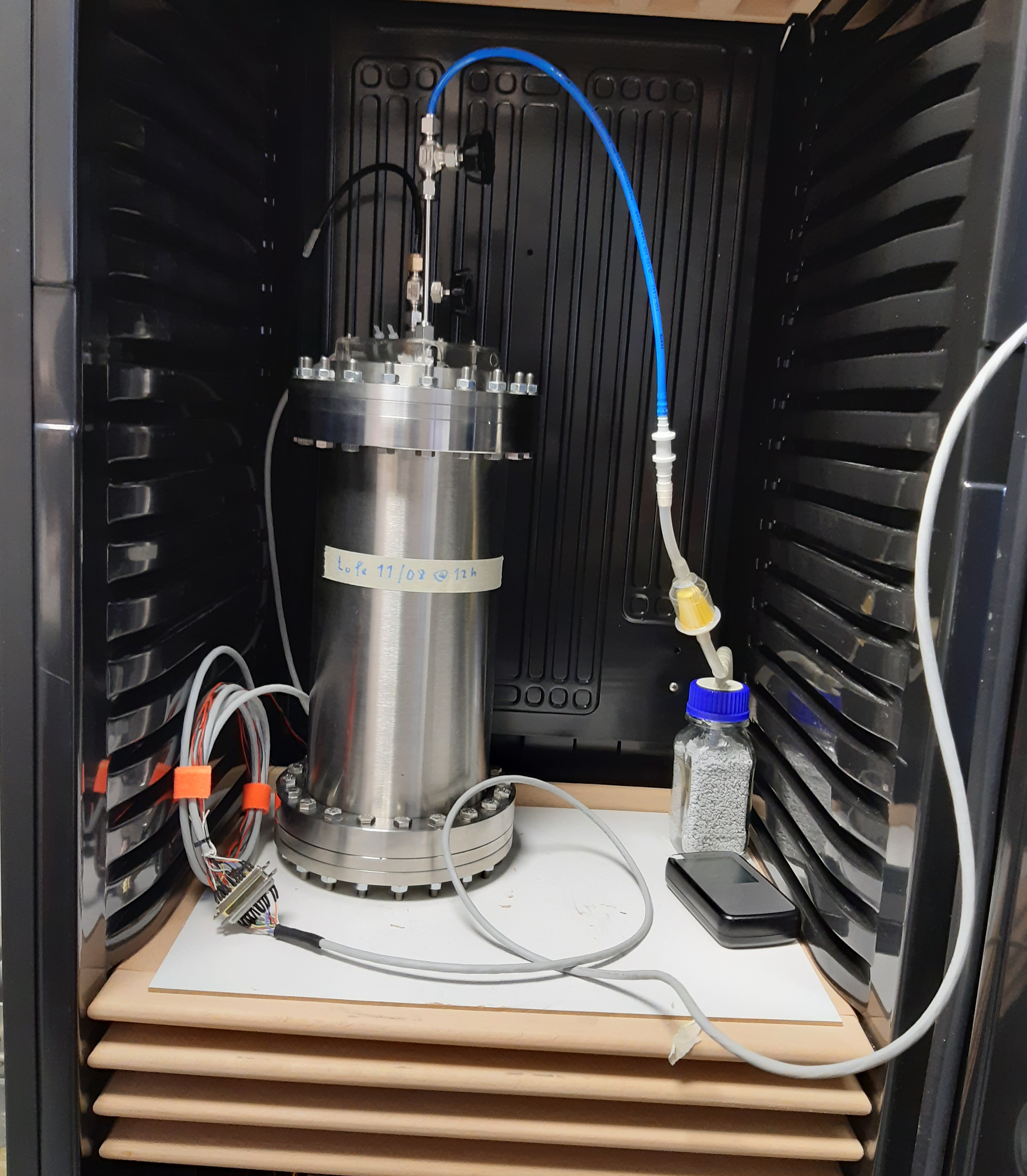 Radon adsorption test bench that can operate from +20°C to -80°C. © Olivier Llido