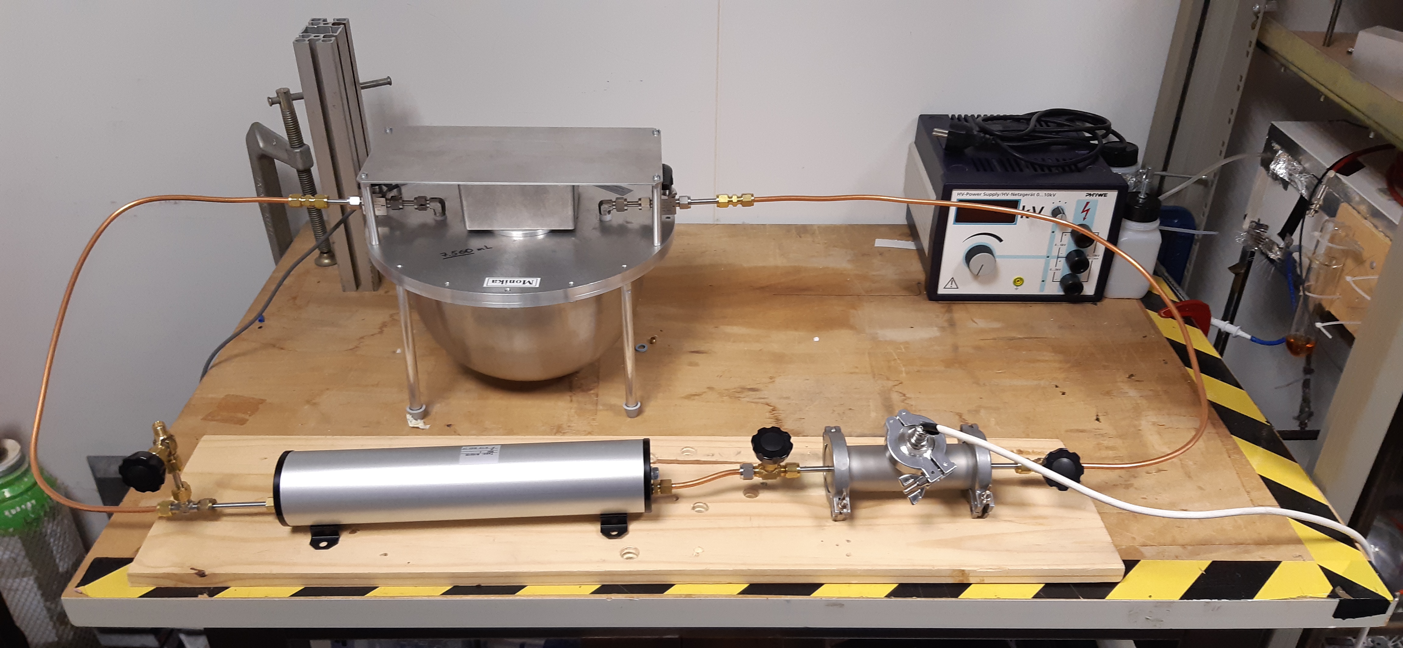 Radonization chamber in controlled atmosphere. This chamber allows to expose small objects to a high concentration of radon. The nature of the gas, temperature, pressure and humidity are controlled. © Olivier Llido