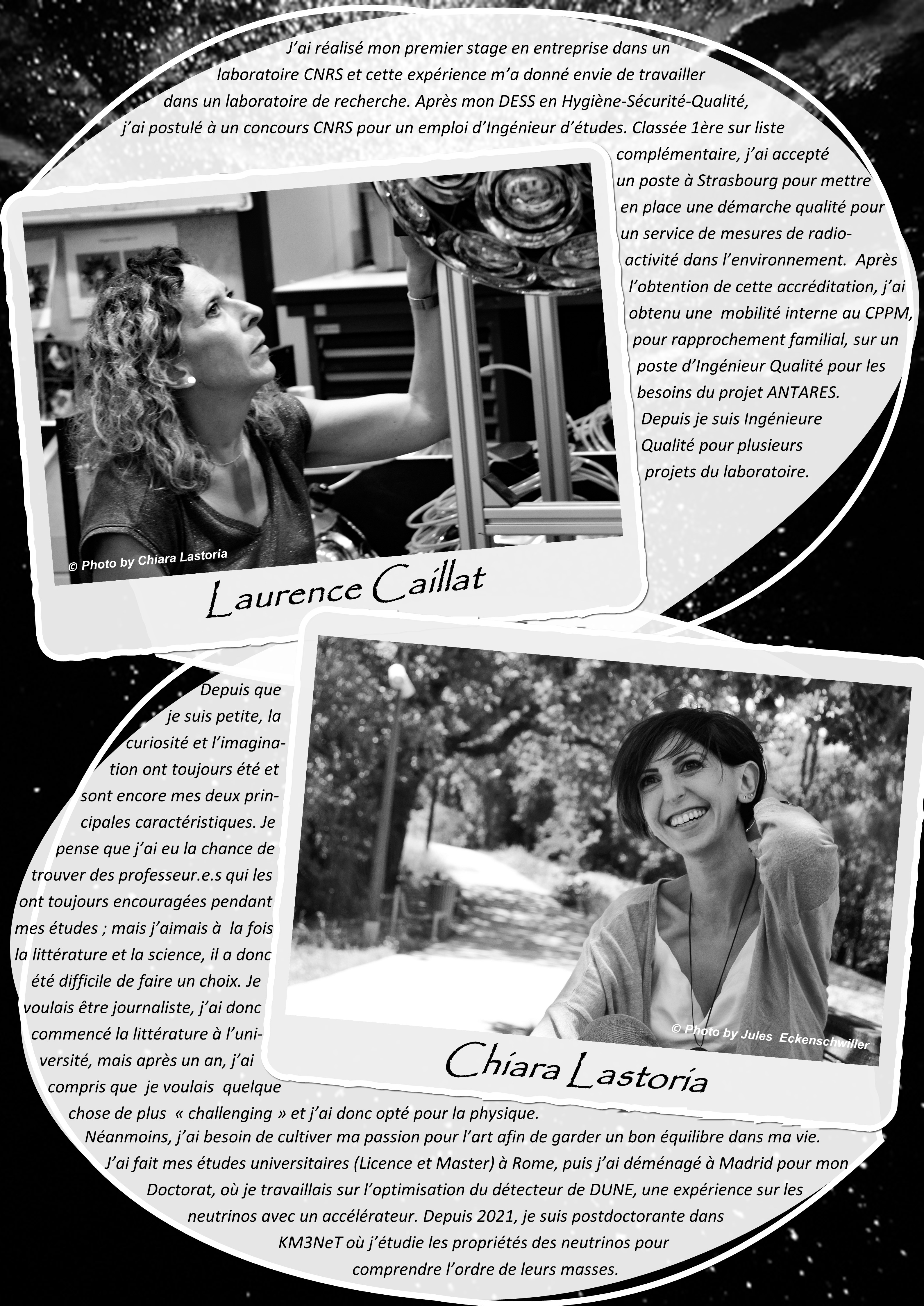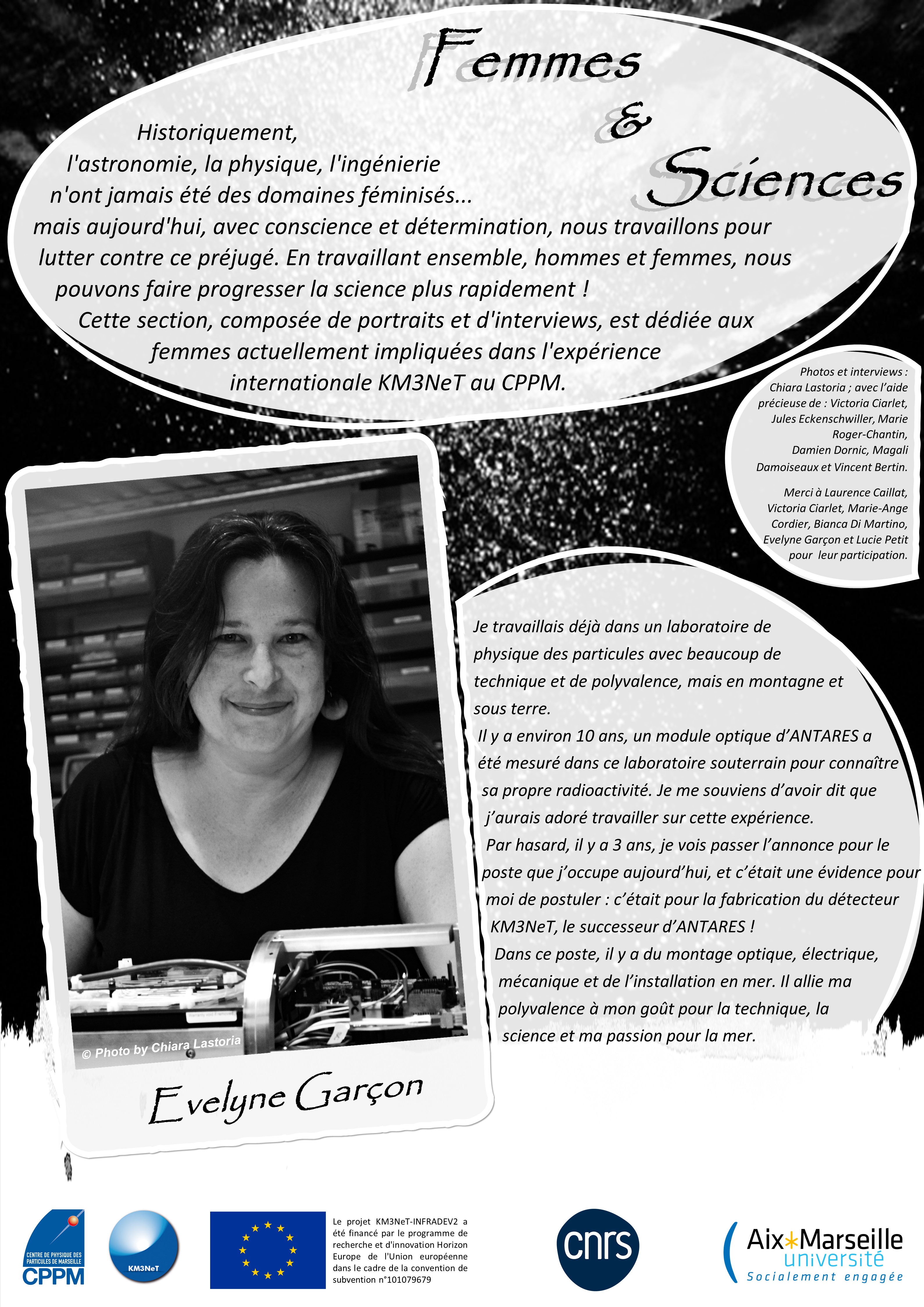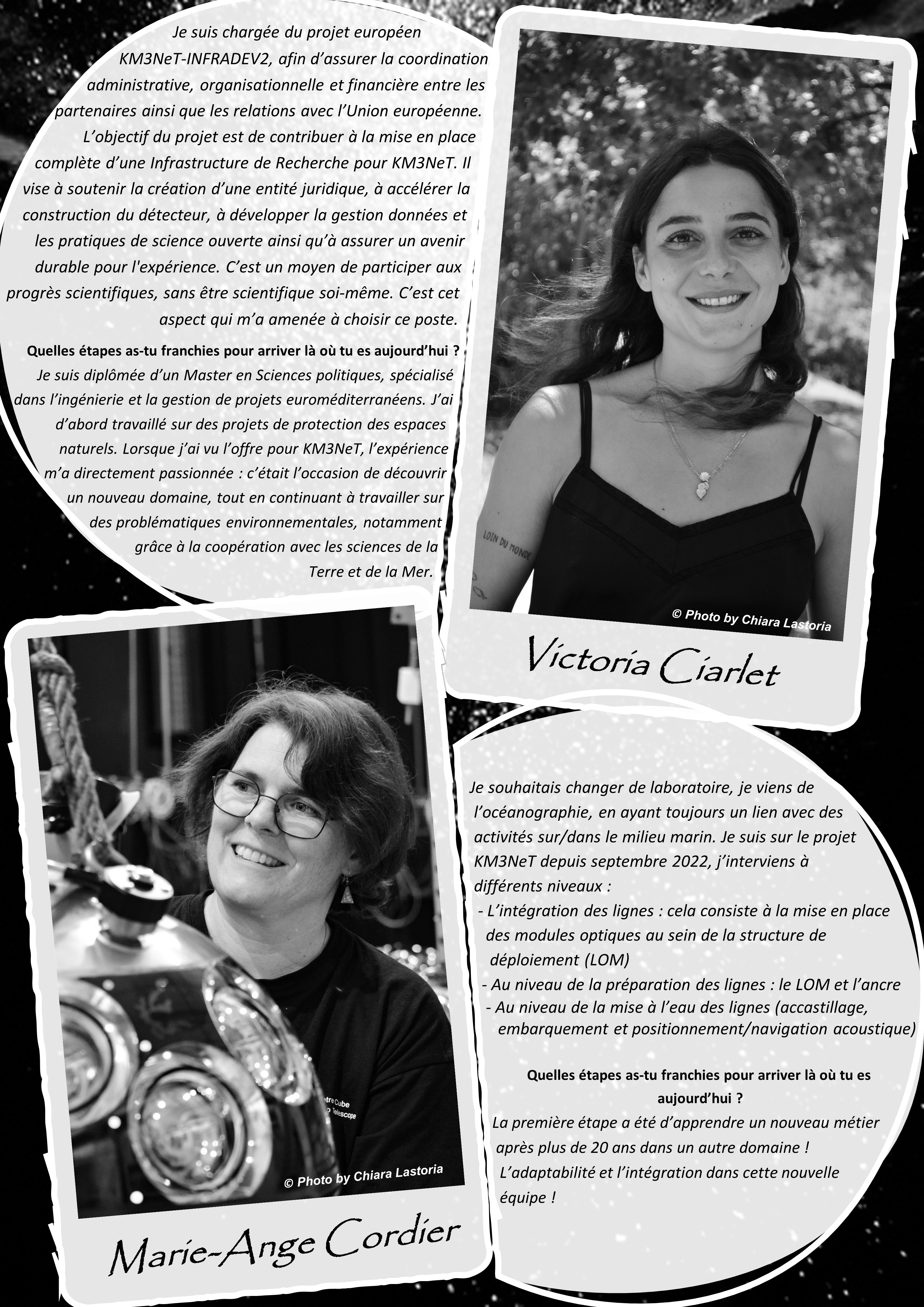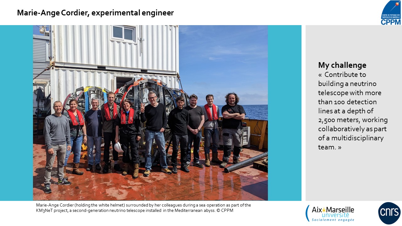 Historically, astronomy, physics and engineering have never been feminised fields... but today, with awareness and determination, we are working to combat this prejudice. By working together, men and women, we can make science progress faster! This section, featuring portraits and interviews, is dedicated to the women currently involved in the international KM3NeT experiment at the CPPM.