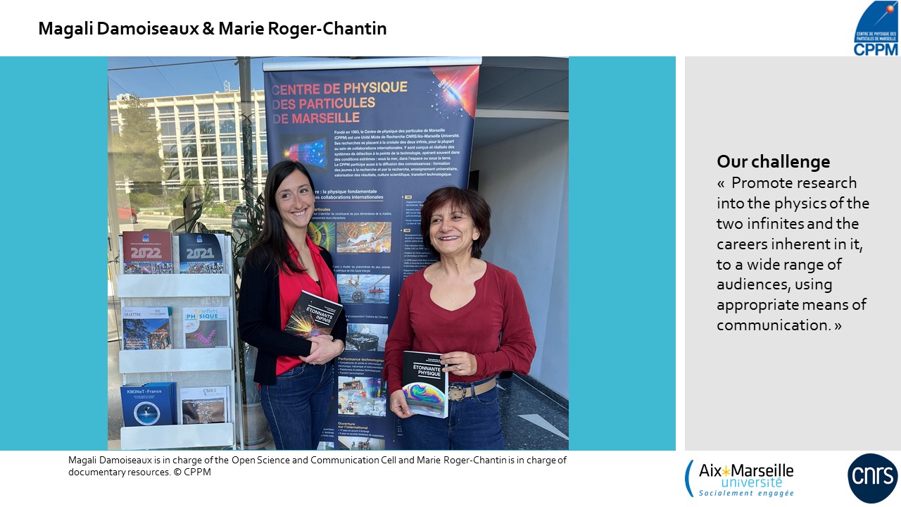 The CPPM is involved in international physics projects, thanks to the skills and expertise of the men and women in the laboratory. Only 28% of the staff are women. All too often, women tend not to choose scientific careers. We are therefore carrying out awareness-raising campaigns aimed at the general public and the younger generation, particularly girls, to show them, through the testimonies of female researchers and engineers, that they have just as much a place as boys in the field of research.