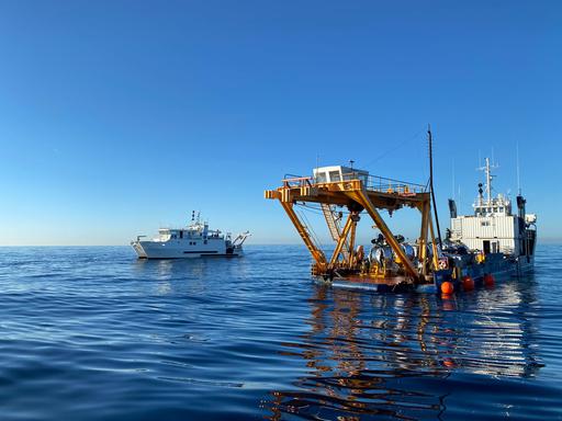 On November 19, the KM3NeT team boarded on Castor, a Foselev Marine vessel, with the detection lines. The Janus, a SAAS/Comex Marine oceanographic research and underwater intervention vessel, was also on site, at about 40 km offshore La Seyne-sur-Mer. The operation at sea was a large one, as seven lines were to be deployed, but the sea state rapidly deteriorated and the operation had to be shortened. Nevertheless, four lines were installed on the seabed and connected to the junction box, thanks to an ROV (Remotely Operated Underwater Vehicle). The junction box is a real masterpiece of the installation because it is from this device that is also connected the electro-optical cable of about 40 kilometres through which all the data transit to the control station on land and will be analysed by the scientists of the KM3NeT international collaboration.